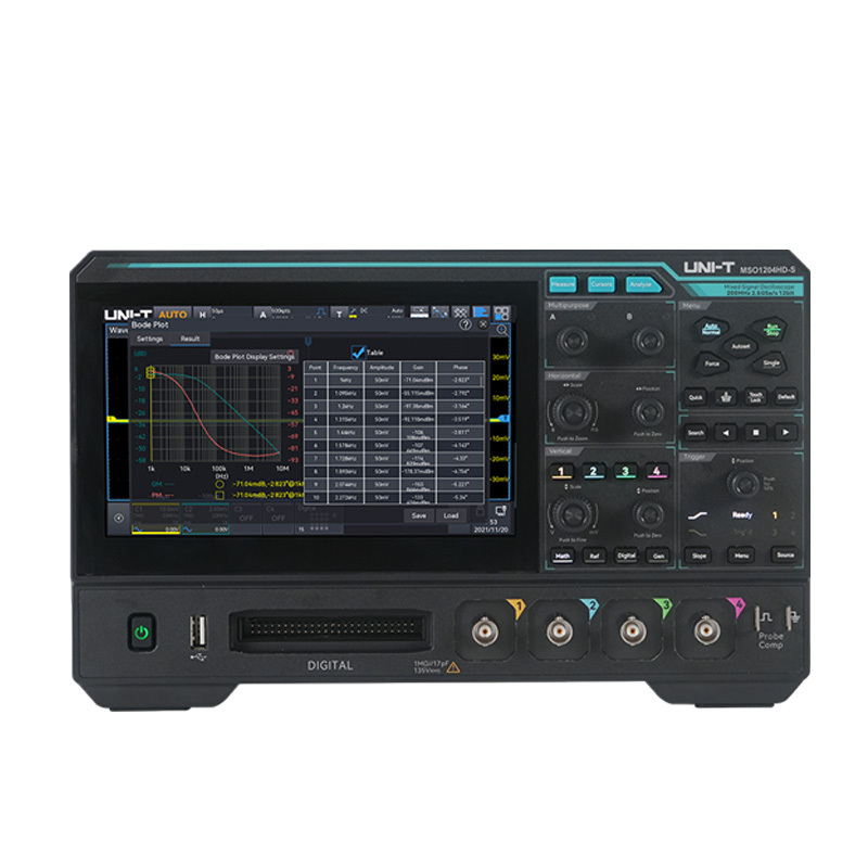 波特图功能结合优利德隔离变压器选件UT-ISOT,可以轻松绘制波特图和电源抑制比(PSRR)响应曲线,精准捕捉关键频率点的增益与相位。通过直观图形化显示,配合数据列表、光标测量和自动测量工具,深入分析频率响应变得轻而易举。