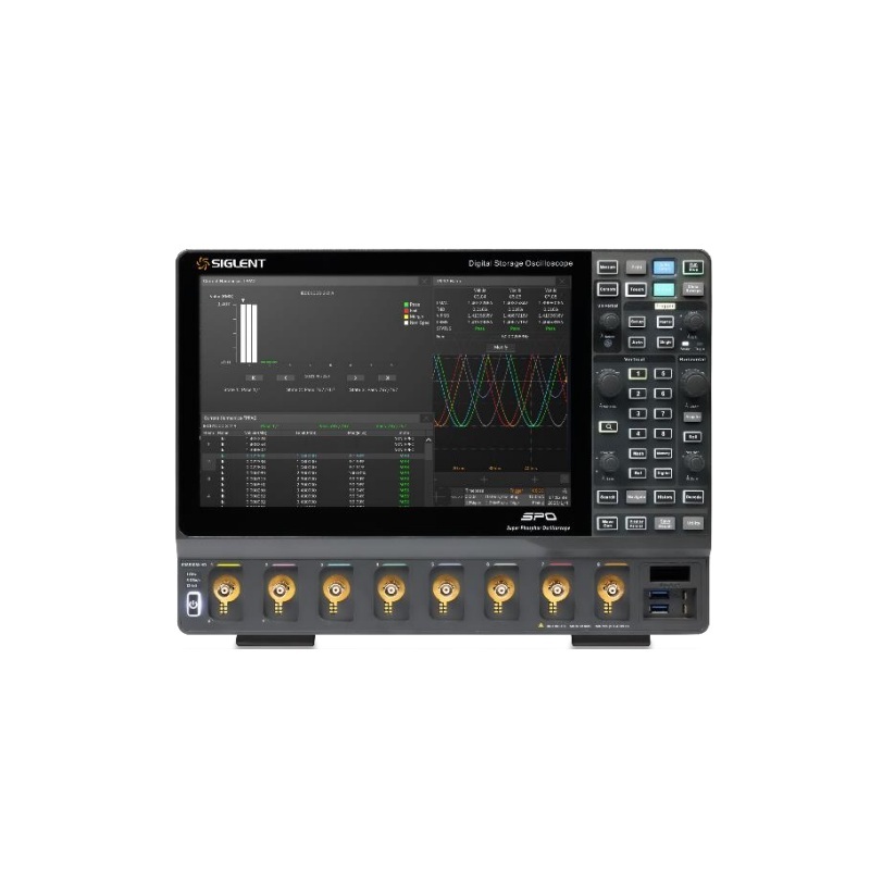 SDS5000X HD 和 SDS5000L 系列高分辨率数字示波器,最高 支持 8 通道,具有 12-bit 垂直分辨率、优秀的本底噪声性能和 垂直测量精度,能满足更多通道和更高精度的测量需求。产品 的最大带宽 1 GHz,采样率最高 5 GSa/s,存储深度可达 2.5Gpts/通道;采用 SPO 技术,波形捕获率高达 650 000 帧/ 秒,具有 256 级辉度等级及色温显示;创新的数字触发系统, 触发灵敏度高,触发抖动小,支持丰富的智能触发、串行总线 触发和解码;支持历史 (History) 模式、分段采集 (Sequence)、 模板测试、搜索、导航、波特图、双脉冲测试和三相电源分析 等高级分析模式;具备丰富的测量和数学运算功能。